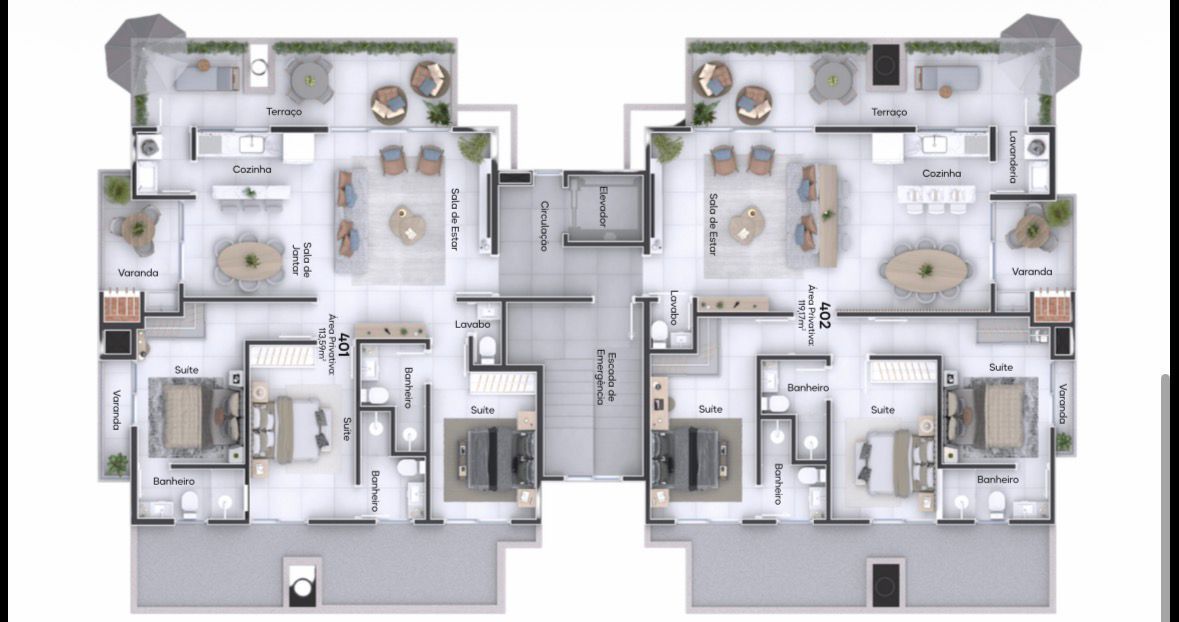 - Área privativa 119.17m²