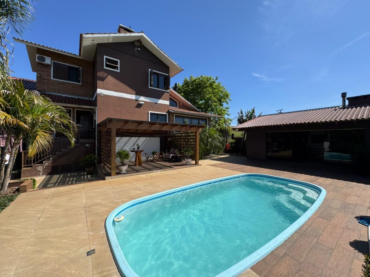 Casa de campo à venda no Bairro Florestal em Lajeado. A poucos minutos do centro da cidade essa casa conta com 3 dormitórios sendo 2 suítes, 4 banheiros (1 lavabo), espaço gourmet, quiosque com piscina e 2 vagas de garagem. Um lar semimobiliado, pronto para acolher sua família com conforto e praticidade. Entre em contato e agende sua visita!