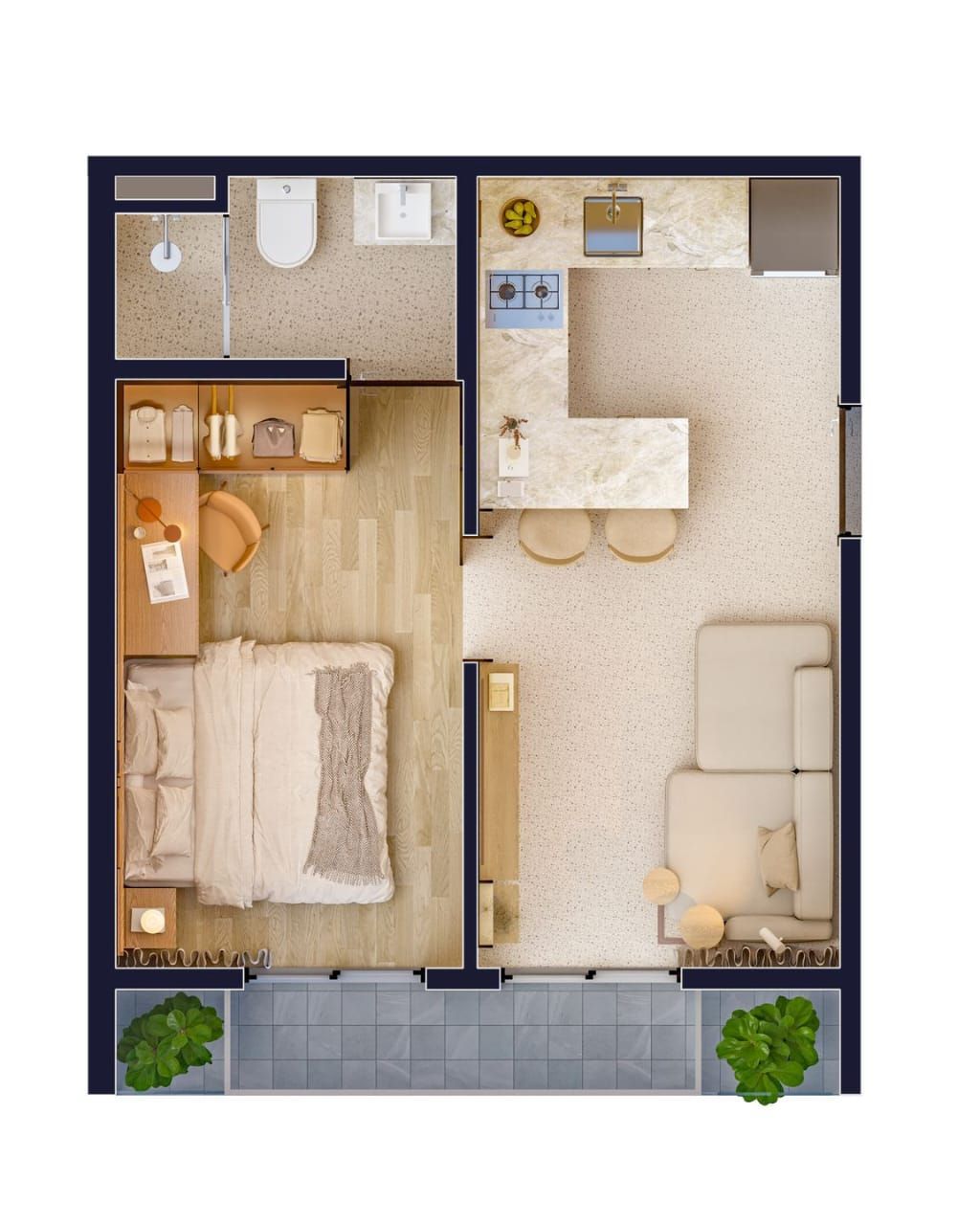 - Área total 45.77m²